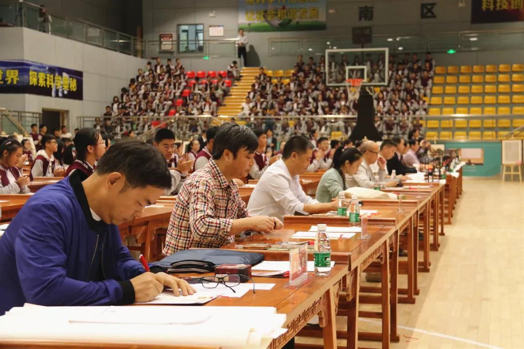 一進(jìn)入健行館,一股書香氣息便迎面撲來——只見偌大的館內(nèi),規(guī)規(guī)整整地擺放著一列列古色古香的桌椅,上面都工工整整擺放著文房四寶——筆、墨、紙、硯。是的,體育館似乎不再是體育館了,而是一座具有深厚人文底蘊(yùn)的書房。