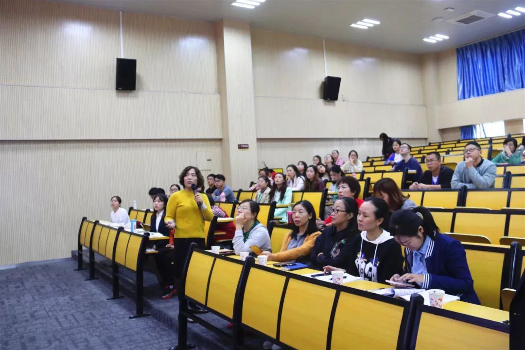課后,丁老師與老師們親切交流。她指出:“要充分鍛煉學生的聽、說、讀、寫、背誦、思辨、反應力和專注力。說話接龍最重要的是激活,激活孩子內在的潛能,讓孩子們學以致用。”老師們紛紛表示獲益匪淺。