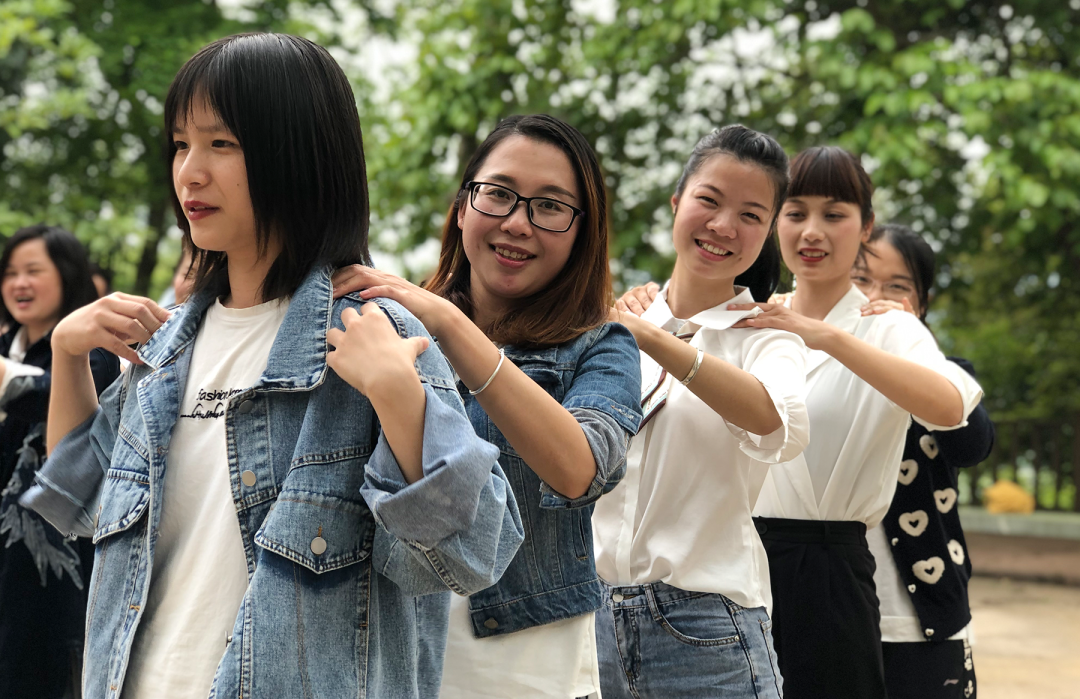 下午,老師們來到曬谷場開展團建游戲,參加按摩操、爬蟲競走、單腿跳、蒙眼互打等游戲?;顒釉谝黄瑲g聲笑語中圓滿結束。