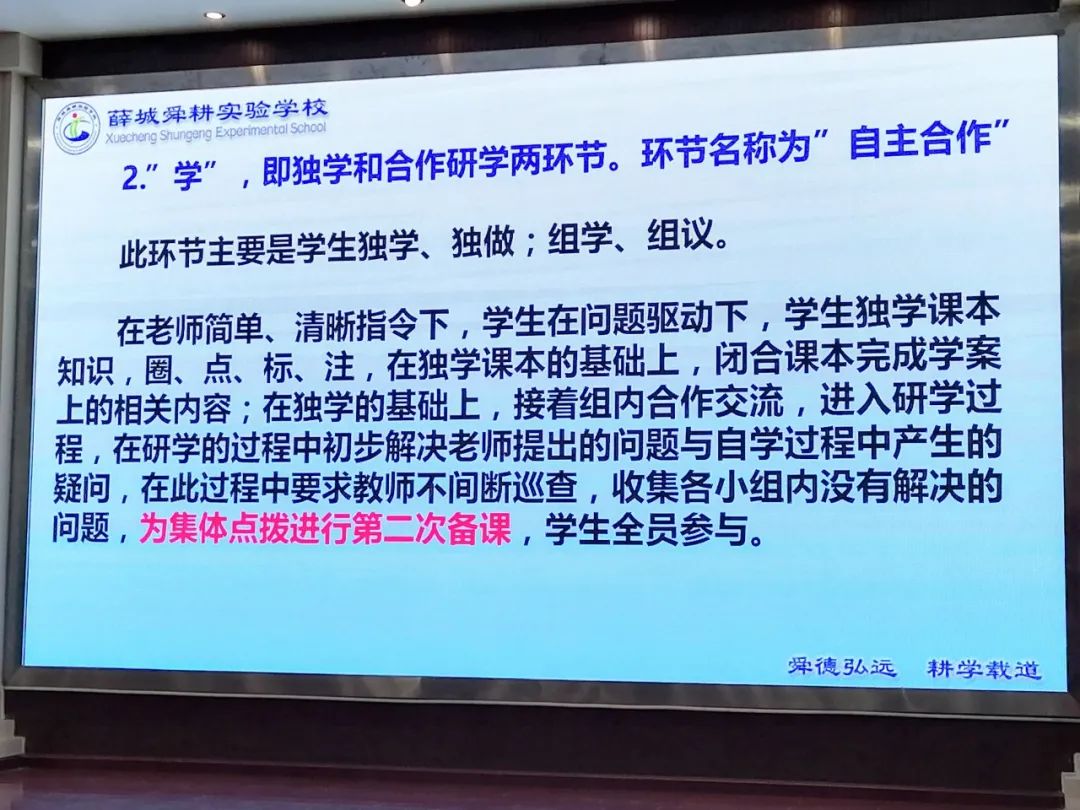 教育專家和大咖們所例舉的成功典范都有一個共性的地方:把時間還給孩子,孩子的自主學(xué)習(xí)才能提高學(xué)習(xí)效率。我們可以借鑒的是:課堂和課后把時間給孩子,在教師精心備課安排好任務(wù),精準(zhǔn)引導(dǎo)下,充分發(fā)揮孩子的主觀能動性去學(xué),改被動學(xué)習(xí)為主動學(xué)習(xí)。這個過程對于我們習(xí)慣了灌輸式和填鴨式教學(xué)的老師來說,會是一個非常痛苦的過程,但是課堂有改變,學(xué)校才會改變。課堂模式也不是所有課型都按各個名校都已經(jīng)驗證成功的“導(dǎo)、思、議、展、評、檢、用”高效6加1課堂教學(xué)七環(huán)節(jié)的模式,可以結(jié)合我校實際可以先在新授課中試行,從一種到復(fù)習(xí)課和講評課、習(xí)題課等多種課型逐步過度推行,還可以融入自己的特色,兩者相結(jié)合進(jìn)行優(yōu)化。山東省棗莊市薛城舜耕實驗學(xué)校黃飛校長的報告貼近實際,可操作性強(qiáng)。為了真正實現(xiàn)高效課堂,提出:導(dǎo),即激情導(dǎo)入和目標(biāo)導(dǎo)學(xué)。學(xué),即獨(dú)學(xué)和合作研學(xué)兩環(huán)節(jié)。展,即展示學(xué)習(xí)成果或困惑。評,即點評精講,歸納總結(jié)。練‘即當(dāng)堂訓(xùn)練。測,即總結(jié)與當(dāng)堂檢測。這就是一個很接地氣的特色模式。