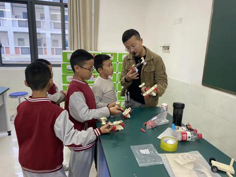 有一些語(yǔ)數(shù)課上的“笨孩子”,在科學(xué)大課堂上非常活躍,在完成任務(wù)的基礎(chǔ)上還樂(lè)于幫助其他同學(xué),課后也會(huì)常常找柴老師詢(xún)問(wèn)關(guān)于制作方面的問(wèn)題。除了講授每個(gè)小制作的原理,教學(xué)生組裝最基礎(chǔ)的零件,柴老師還別出心裁,將原來(lái)滑翔機(jī)上的零件拆下來(lái)改造成了水上自由漂浮的小船。這讓學(xué)生對(duì)這些小制作更感興趣,原來(lái)只要簡(jiǎn)單地轉(zhuǎn)化一下思維,稍加改動(dòng),就可以變成新的小玩意兒。