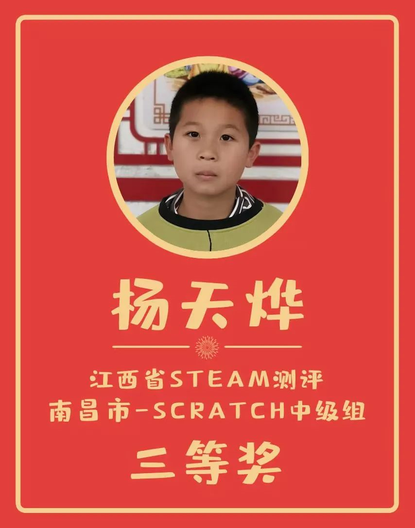 通過以賽促學(xué),以賽促教的方式,孩子們參加了由藍(lán)橋杯大賽組委會與美國普林斯頓多文化教育研究中心合作推出的青少年編程比賽(江西省STEAM測評-南昌市-Scratch初級組和中級組),并取得優(yōu)異成績,有7人獲獎并成功進入省決賽,期待孩子們下一輪更深入的切磋交流。