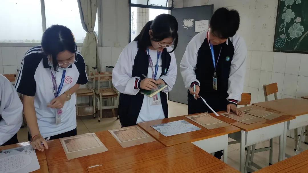 本次初賽除了語文課組老師作為評(píng)委外,還特邀了上一屆獲硬筆書法比賽第一名的韋家麗(2班)、張寶兒(4班)、牟星宇(2班)、何子?jì)梗?班)、于珊珊(2班)、劉語晴(4班)、王思淇(3班)、楊欣冉(3班)等8位學(xué)生作為小評(píng)委。初賽以班級(jí)為單位進(jìn)行,每位同學(xué)都有資格參賽,賽后經(jīng)評(píng)委選出入圍選手參與決賽。