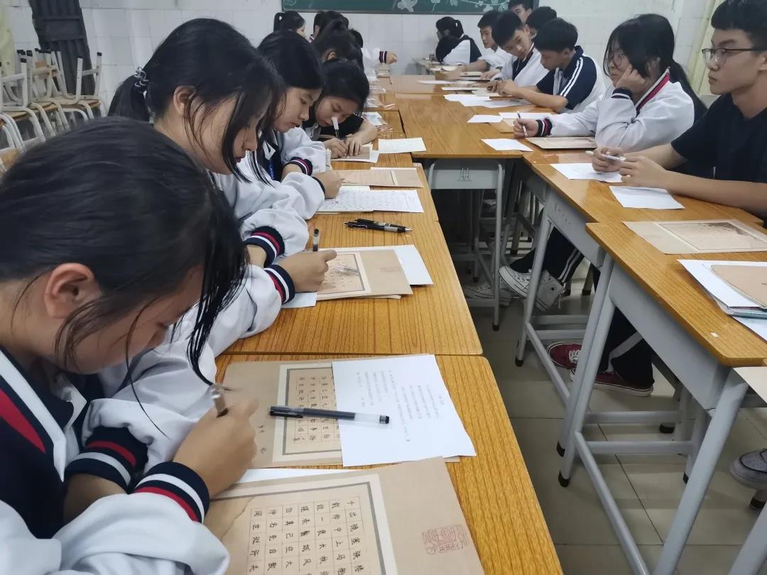 在初賽環(huán)節(jié),班級(jí)是練場,也是賽場。同學(xué)們在接到比賽通知后,認(rèn)真練字,摩拳擦掌。